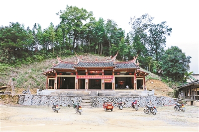 供奉章公祖师肉身佛的祠堂,挂着盼佛像早日归国的横幅供图/林文青