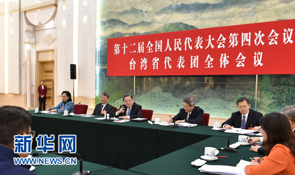 3月7日,中共中央政治局常委、全国政协主席俞正声参加十二届全国人大四次会议台湾代表团的审议。 新华社记者高洁摄