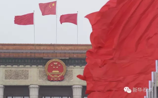 2016年3月5日,天安门广场上红旗飘扬。 新华社记者薛玉斌摄