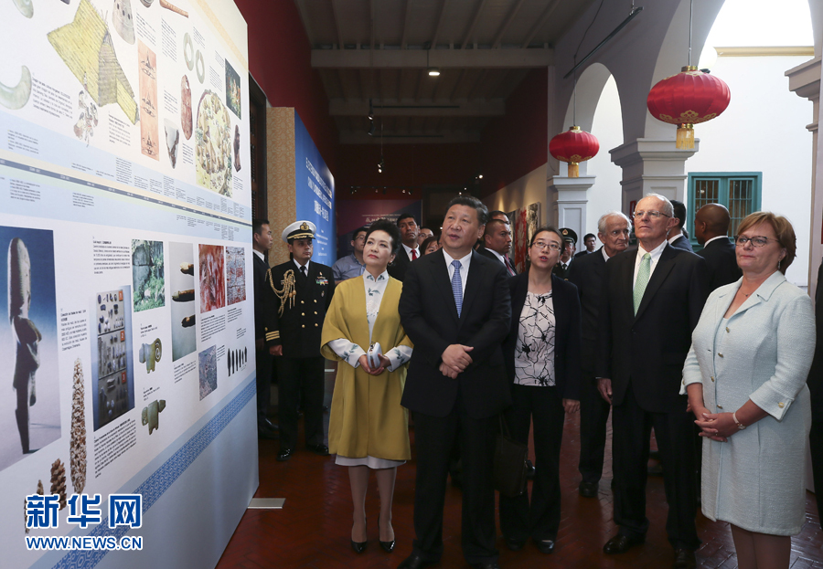 来源标题:习近平和彭丽媛同秘鲁总统库琴斯基夫妇共同出席中拉文化交流年闭幕式并参观“天涯若比邻-华夏瑰宝展”