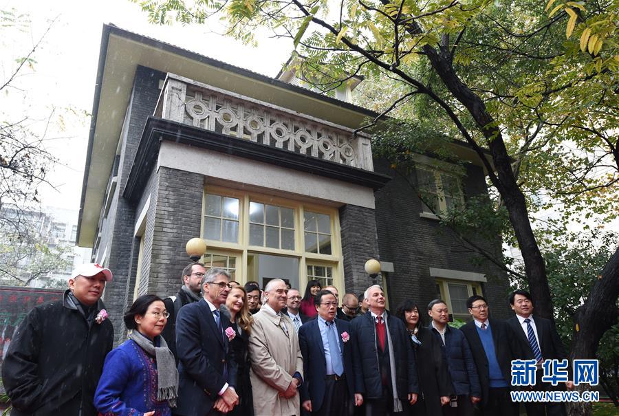 11月23日,中外与会者在作为纪念馆的拉贝故居前留影。当日,南京大学“拉贝与国际安全区纪念馆”举行建馆10周年纪念活动。1937年日军攻占南京期间,时任西门子驻南京业务代表的拉贝与十几位国外友人共同建立“南京国际安全区”,拉贝被推选为主席,在不足4平方公里的区域内共挽救了25万中国难民的生命。他还写下了2400多页的战时日记,真实记录了日军在南京大屠杀中的暴行。2006年10月31日,位于南京大学校园的拉贝故居作为“拉贝与国际安全区纪念馆”正式对外开放,至今已接待国内外参观者近20万人。新华社记者 孙参 摄