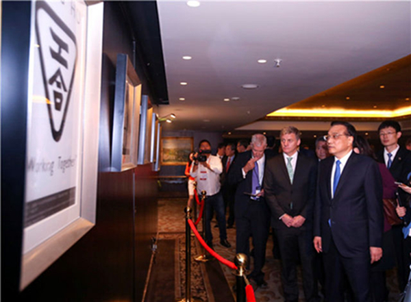 克强总理在最新科研成果展示图前驻足寄语:希望两国进一步发挥互补优势,强强联合,研发出具有世界领先水平的产品。