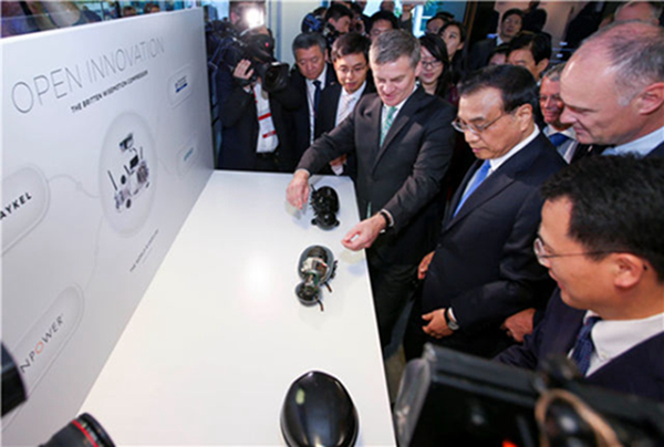 在奥克兰,克强总理还来到海尔—斐雪派克公司奥克兰研发中心,推动双方创新合作。他鼓励两国技术人员发挥各自优势,推出更多创新技术和优质产品。