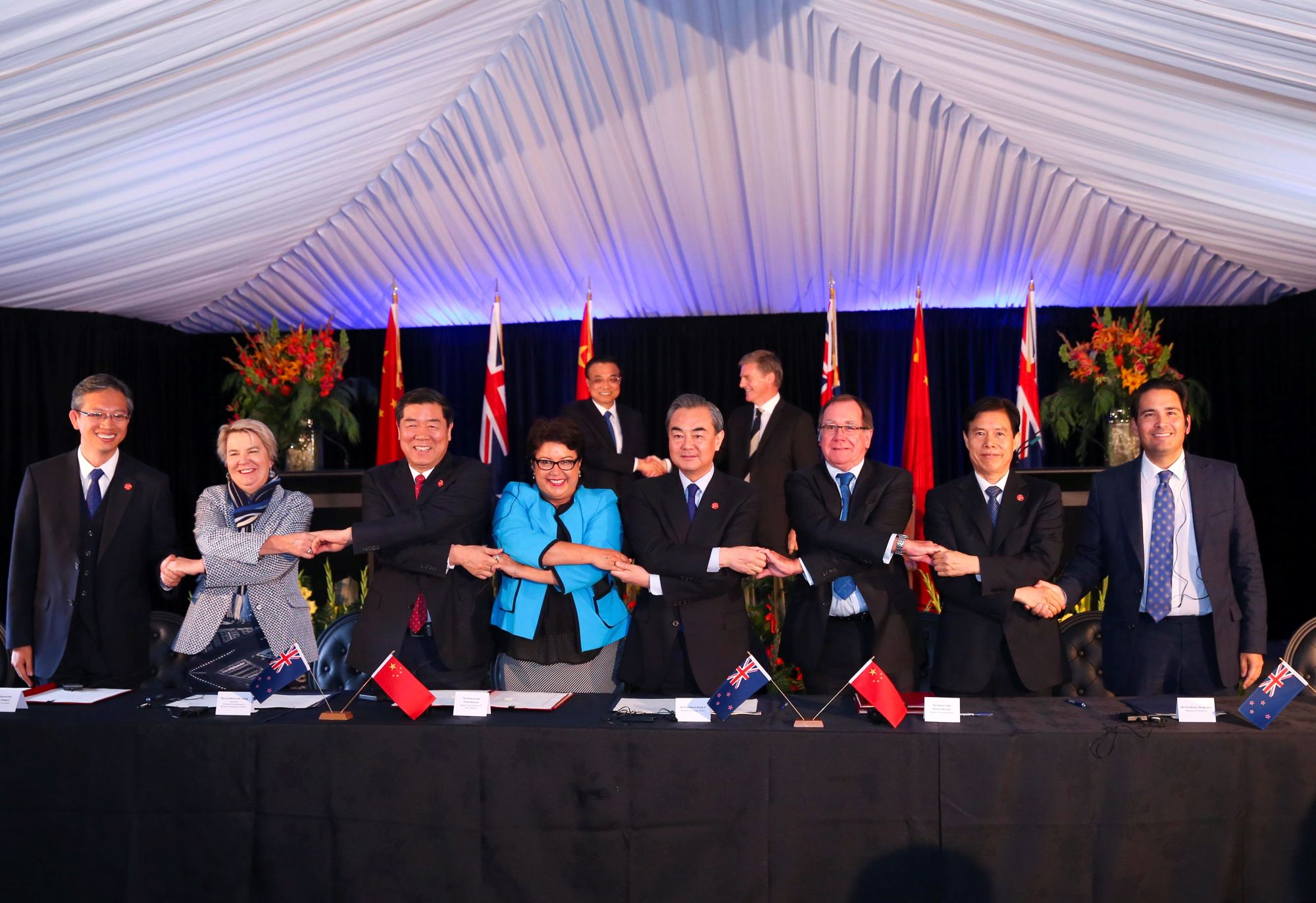 出席签字仪式的中新两国代表笑靥如花,兴奋地交叉握手。在两国总理见证下,他们签署了9份合作协议,包括关于“一带一路”合作的谅解备忘录,由此,新西兰成为首个同中国签署此类协议的西方发达国家。