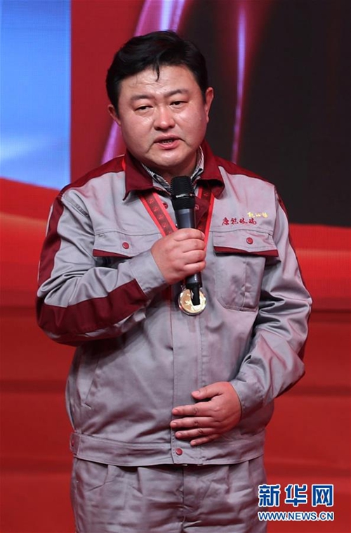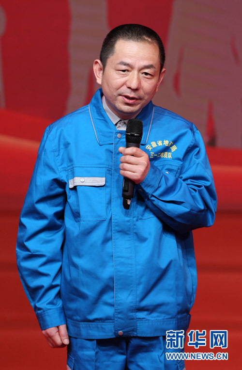 安徽省地矿局313地质队职工张怀东在“最美职工”发布仪式上(4月21日摄)。新华社记者才扬摄