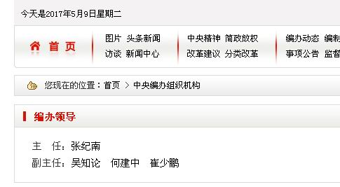 2016.08—2017.04 中央机构编制委员会办公室副主任
