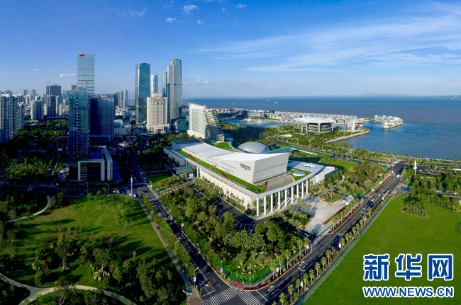 这是8月26日拍摄的厦门国际会议中心及周边景色(航拍接片)。新华社记者 姜克红 摄