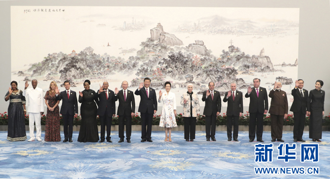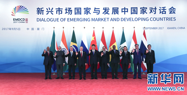 2017年9月3日至5日,福建厦门,习近平主席出席并主持金砖国家领导人第九次会晤和新兴市场国家与发展中国家对话会,出席金砖国家工商论坛开幕式。