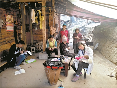 山上的毛毛刺沾满了她的裤腿,刺到双腿脚踝处非常疼痛,她不得不用绳子扎紧裤脚,将刺一根根地往外拔。有时实在爬不上去,同行的伙伴拽着她走;一到村里,她一屁股坐在村小组活动室门口的石阶上大喘粗气。一行人到村后发现,真没村民到场来看病,村小组组长便用喇叭一遍一遍地广播。听说广东的专家到了,一些村民抱着试试看的态度来了。见这医生不仅能看病,还带来仪器体检,先来的村民又回去一家家地劝。