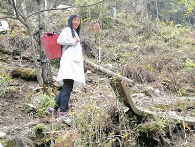 管延萍说最终这一天她忙到天黑,由于提纸箱上山很不方便,回来后便买了背篓。此后上山下乡,便背着一个大背篓,里面装满各种诊断仪器、干粮和水。有时候年轻同事还得扛B超机、抬车床上山,方便她给病人做检查。在海拔近2000米的怒江大峡谷中,经常要爬几百米甚至千米的高山,每爬一步都十分艰难。短的山路每次要爬半个多小时,长的要爬3个多小时。