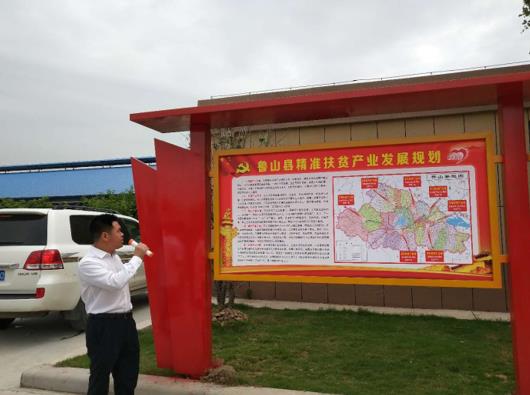 (图为当地工作人员讲解鲁山县精准扶贫产业发展规划)