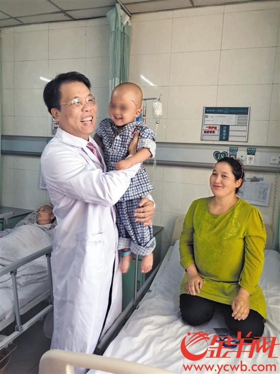 喀什地区第一人民医院的广东援疆专家与被治愈的患儿合影