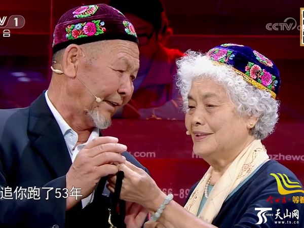 艾外都 · 阿不都和王香莲在《等着我》节目现场。