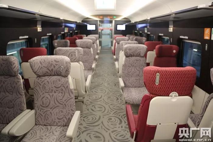 其次,从内饰来看,一等座车厢座椅和地板印有玫瑰花纹,色调配置浪漫温馨,每个座位配有脚踏板、独立阅读灯和耳机接口等。二等座车厢除了座椅设计时尚、色彩明快,地板还有波浪纹设计。同时车内设有无障碍洗手间、自动饮水机以及母婴护理台等设施,考虑到内地和香港旅客使用的电器插头不一致,每个座位都配备了两种型号的插座。