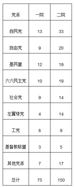 【议会】由一院和二院组成。两院议员任期均为4年,但改选不在同一年进行。