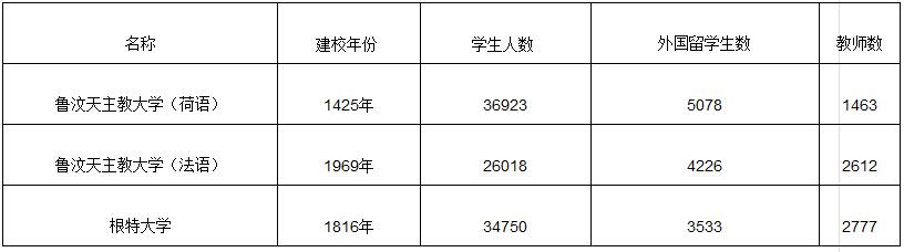 【教育】比利时实行6—18岁免费义务教育制。教育由地区政府管理。教育经费占国民生产总值的6.4%。全国共有大学12所,高等专科学院45所,高等艺术学院17所。在全国6所综合性大学中,建于1425年的鲁汶天主教大学历史最为悠久。前3大著名高等学校情况: