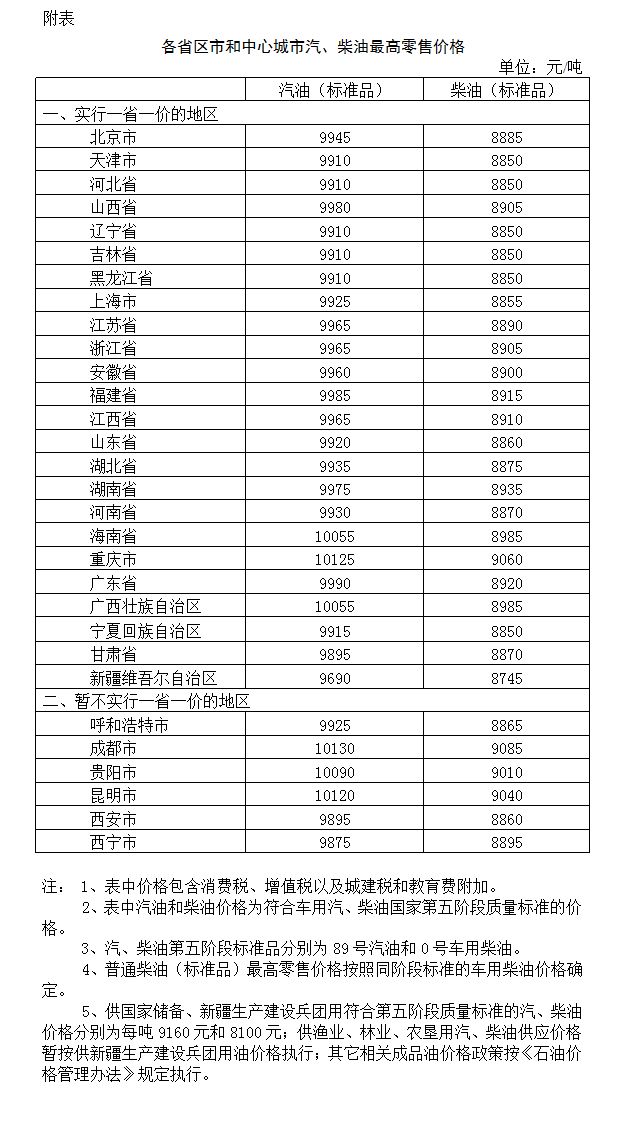 人民网北京10月20日电(记者陈孟)据国家发改委官网消息,根据近期国际市场油价变化情况,按照现行成品油价格形成机制,自2018年10月19日24时起,国内汽、柴油价格(标准品,下同)每吨分别提高165元和160元。