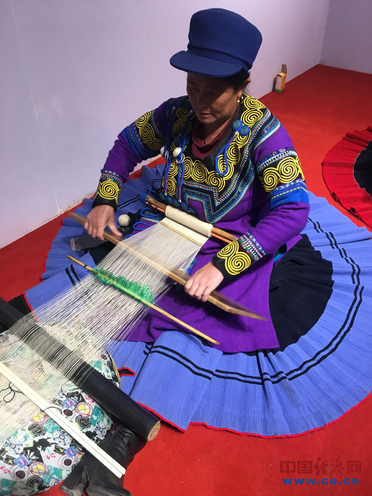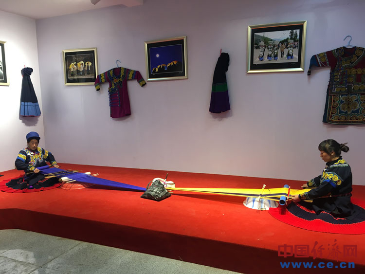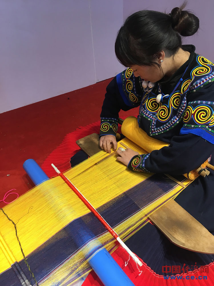 图为彝族女子展示织布。经济日报-中国经济网记者 梁木摄