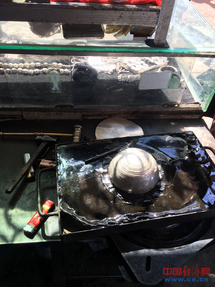 图为勒古沙日正在制作银具。经济日报-中国经济网记者 梁木摄