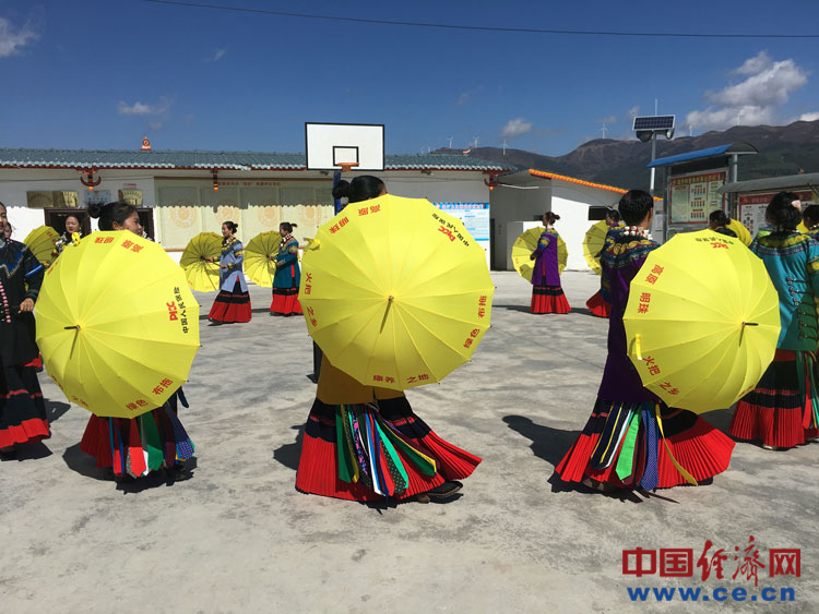 除了独特的服饰文化,布拖县的传统彝族文化还有讲述彝族女人一生的歌曲表演--朵乐荷。彝族女子围成一个圆,撑着黄伞唱起歌,一人领唱众人和,通过歌曲来讴歌女性的伟大。