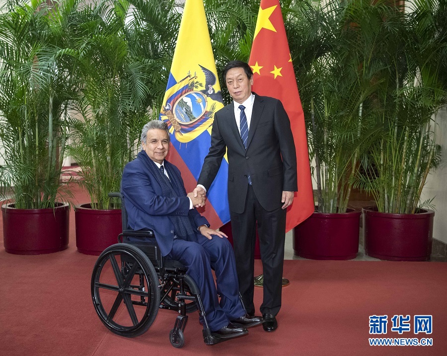 新华社北京12月13日电(记者 吴嘉林)全国人大常委会委员长栗战书13日在人民大会堂会见厄瓜多尔总统莫雷诺。
