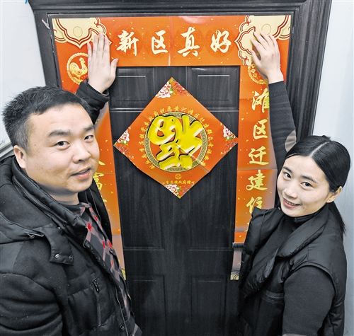 2月15日,在河南省封丘县李庄新区,搬迁户田书新(右)和丈夫在贴春联。2017年8月,国家发改委批复《黄河滩区居民迁建规划》,一场涉及百万人的大迁建开始实施。 李嘉南摄(新华社发)
