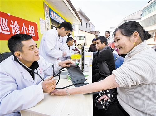 2017年12月6日,江西省新余市渝水区新溪乡卫生院的医务人员在复兴村为村民开展爱心巡诊关爱行动。 周 亮摄
