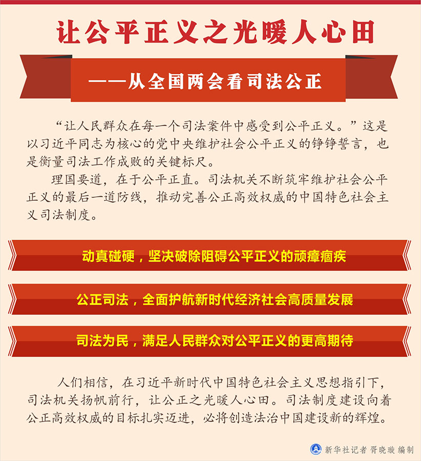 新华社北京3月9日电 题:让公平正义之光暖人心田——从全国两会看司法公正