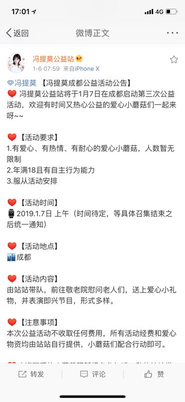 1月7日,志愿者们来到了成都,启动了第三次公益活动。值得一提的是,此次活动中有不少志愿者是受到冯提莫公益站微博公告招募而来,可见冯提莫的粉丝们也与她一样,对公益事业十分热心。
