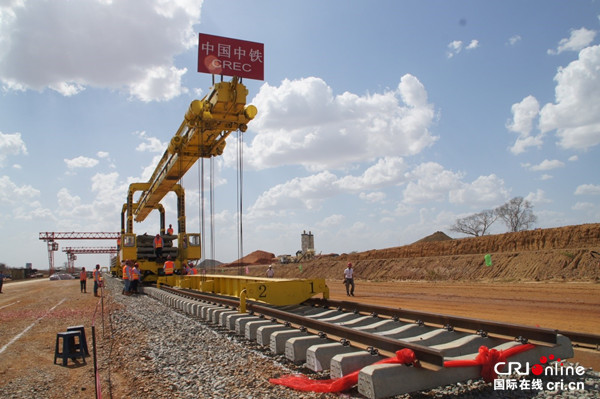 中国中铁在迪阿铁路铺轨