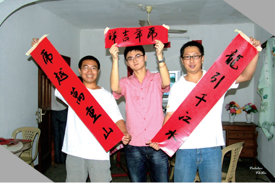 张省身(中)和同事在尼日利亚共度新春佳节。资料图