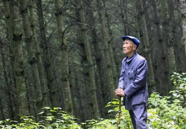 杨善洲:绿了荒山造福百姓的“草鞋书记”。这是守望树林的杨善洲(资料照片)。新华社发