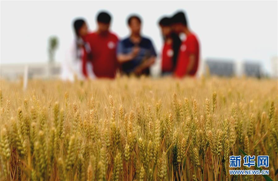 5月29日,中国农业大学师生在曲周一处麦田查看小麦长势。 新华社记者 王晓 摄