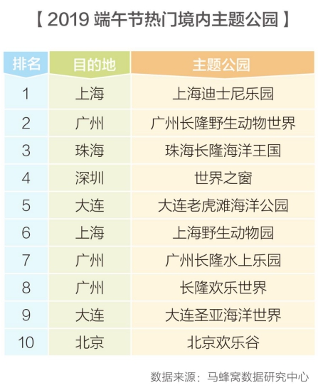 国内主题公园中,国产品牌“长隆系”和上海迪士尼平分秋色。端午期间,国内热度最高的主题公园是上海迪士尼,广州长隆野生动物世界和珠海长隆海洋王国紧随其后,广州长隆水上乐园和长隆欢乐世界也进入榜单前十。