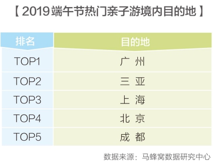 上半年最后一个小长假——端午节即将到来。炎热的天气完全无法阻挡人们出游的热情,端午节期间境内各大旅游目的地热度均出现明显提升。近日,马蜂窝旅游网与腾讯旅游联合发布的《2019端午小长假出游趋势报告》(以下简称“报告”)指出,亲子游成为今年端午最受欢迎的出行主题。六一儿童节刚过,又临近暑期,大多数家庭选择趁端午小长假带娃旅游。
