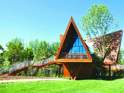 图为北京世园会黑龙江园内以黑龙江木骨架建筑和游牧民居为形态原型的森林树屋。光明日报记者 郭红松摄/光明图片