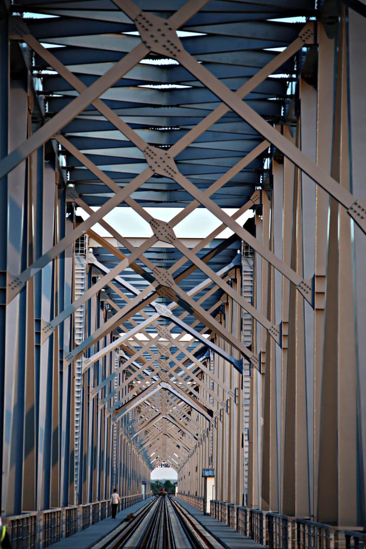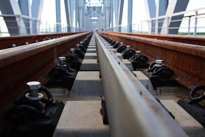 中俄首座跨黑龙江铁路桥同江大桥铁轨。(6月4日摄)