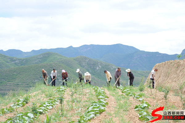 王爱仁正和村民在锄草