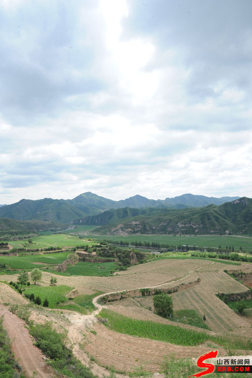 山雨初霁,万物一新。7月6日清晨,昔阳县界都乡柏叶底村北山上,今年刚栽的黄桃树摇曳生姿,树下野生的喇叭花吐露芳华。蔚蓝天空下,70岁的王爱仁正和村民在这里锄草,远远看去,犹如一幅田园画。