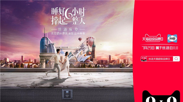这次全方位的创新营销体验的定制和更新,基于天猫超级品牌日对平台大数据能力和营销创新基因的全面调动,天猫超级品牌日对丝涟品牌的超级一天设定,从消费洞察到线上运营,再到与消费者心智沟通,刷新床垫行业沟通消费者的整体流程和全新体验。