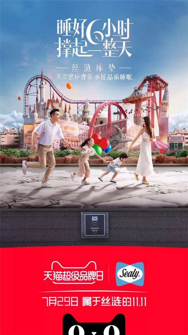 7月29日,来自美国的高端床垫品牌丝涟联手天猫超级品牌日,用极富创新创意的品牌专场活动,打响睡眠保卫战——撑起吧追梦人。助力用户拥有6小时好睡眠,撑起一整天,联合天猫超级品牌日,给丝涟的消费者一个“拥有26小时的超级一天”。