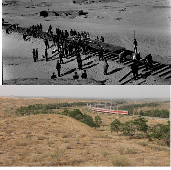 1954年10月,我国首个沙漠科学研究站就建在了中国的“西风口”——宁夏中卫。同年包兰铁路开建。将在中卫境内六次穿越沙漠。其中,沙坡头坡度最大,风沙最猛烈。通车伊始,屡屡遭受风沙漫道的危害,“三天两头列车就中断行驶,且一停就两三个小时。”随后,国营中卫固沙林场筹建,保卫包兰铁路的任务就落在林场职工身上。