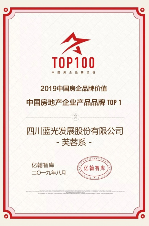 近日,在中国房地产TOP10研究组举办的“2019中国房地产公司品牌价值研究成果发布会”上,蓝光芙蓉系在“2019中国房地产优秀原创产品品牌”评选中,打败了众多对手,荣获top1。
