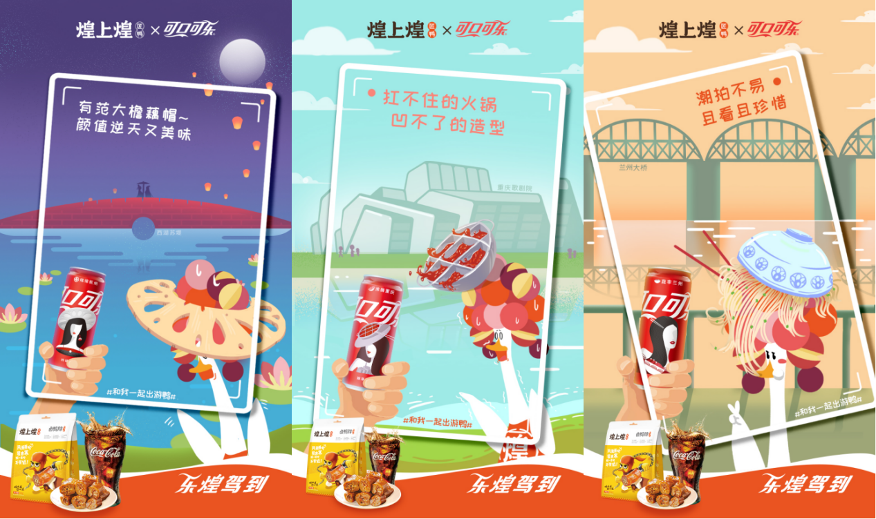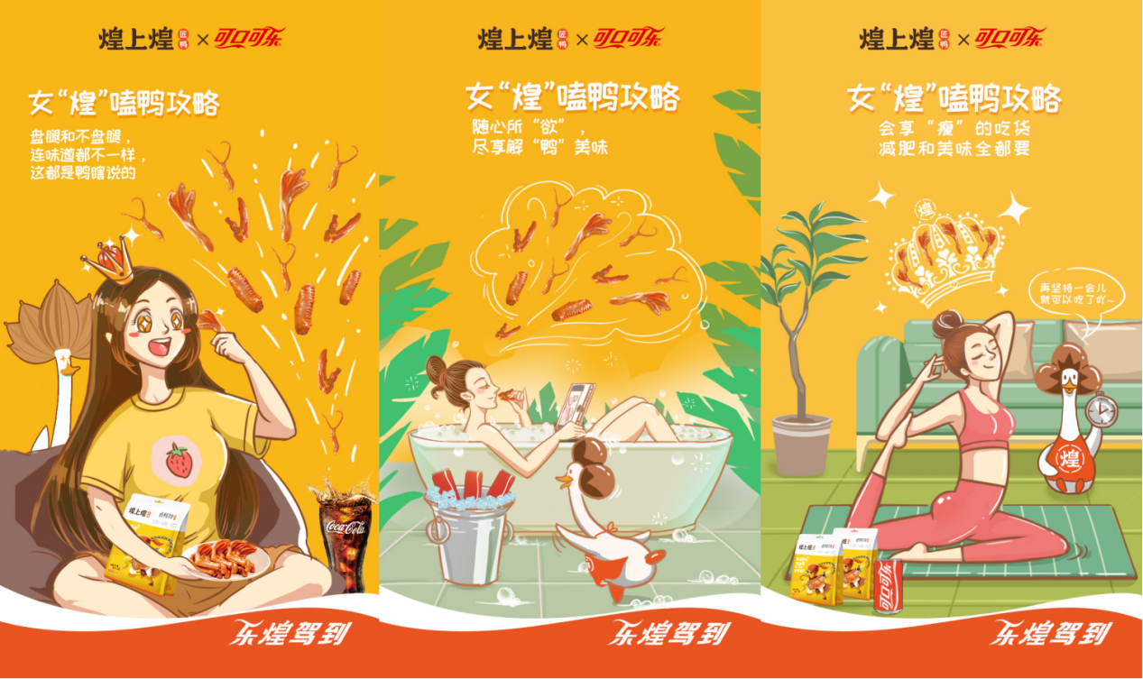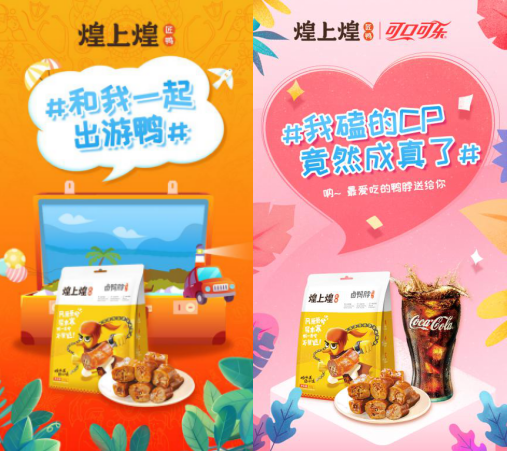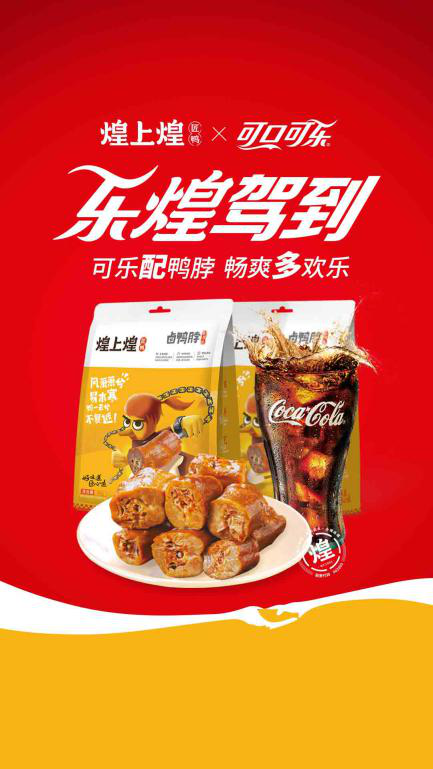 今年九月,休闲酱卤行业龙头煌上煌和可口可乐之间通过深度合作,推出“乐煌CP”进一步加强互补关系,成为高黏度、全平台、人格化的“饮·食”新搭档。