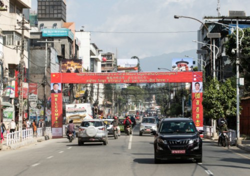尼首都加德满都主要道路上已挂起“热烈欢迎我们尊贵的中国客人”“巍巍珠峰高耸,中尼友谊长存”等欢迎标语。新华社记者王婧嫱摄