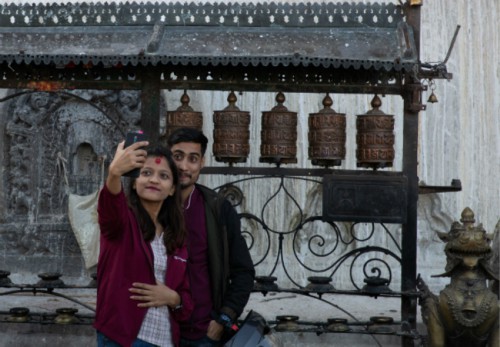 山多、古迹多、节日多是尼泊尔为人津津乐道的三个特色。“德赛节”是尼泊尔的最大节日。与中国人过春节习俗相似,尼泊尔人也要在节日期间家庭团聚、走亲访友。额头的红色“提卡”是来自长辈的祝福。新华社记者王婧嫱摄