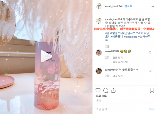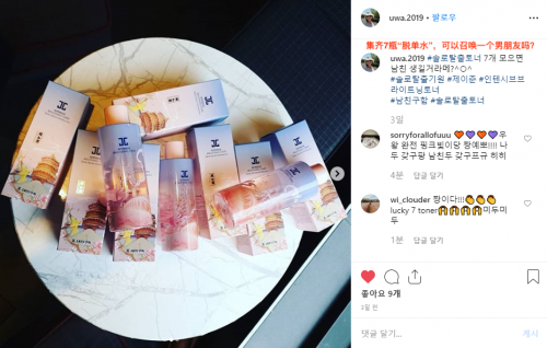 另外,更有不少韩国女孩为了约见心仪对象,争相抢购JAYJUN捷俊联名款“脱单水”,更有相亲、告白或过生日的MM们也用起“脱单水”,甚至韩国男士也追逐潮流,无论是单身“欧巴”还是情侣秀恩爱的男生,都要晒一晒“脱单水”,好玩的是还出现“集齐7瓶脱单水得一个男朋友”的互动……