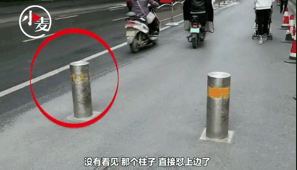 “心里有点急,当时下着雨带着眼镜和头盔,没看到隔离柱直接撞上了。”