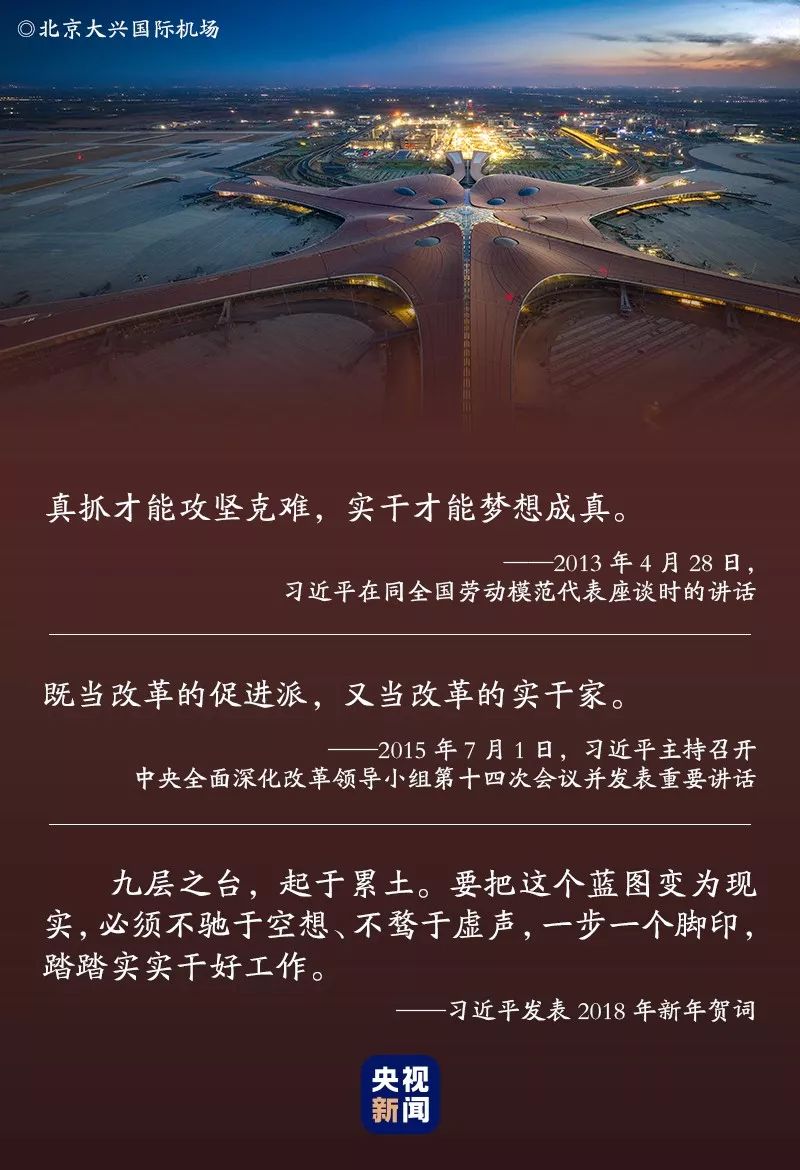 习近平总书记出席了当天的仪式,并宣布机场正式投运。习近平强调,大兴国际机场能够在不到5年的时间里就完成预定的建设任务,顺利投入运营,充分展现了中国工程建筑的雄厚实力,充分体现了中国精神和中国力量,充分体现了中国共产党领导和我国社会主义制度能够集中力量办大事的政治优势。奇迹是干出来的,社会主义是干出来的。共和国的大厦是靠一块块砖垒起来的,人民是真正的英雄。