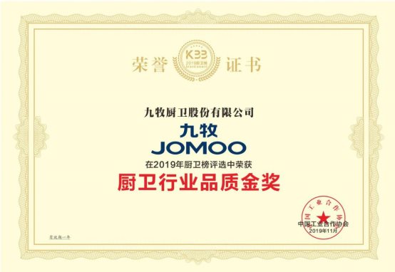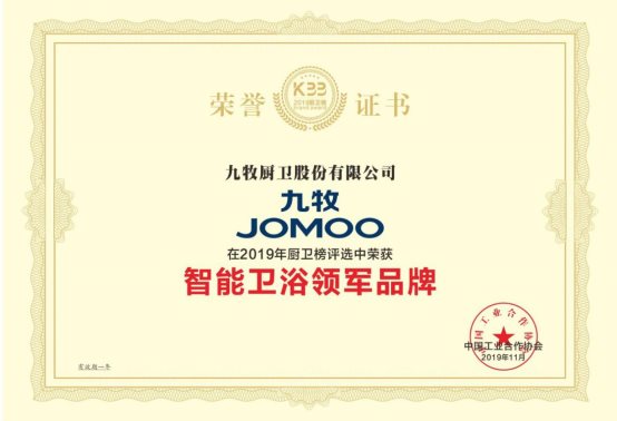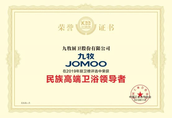 11月2日,2019中国厨卫行业高峰论坛在广东佛山举行,中国工业合作协会秘书长杜玉环、中国林业产业联合会整装分会秘书长唐人、九牧副总裁严桢等出席活动。九牧凭借在行业的卓越表现,独家荣获“民族高端卫浴领导者”,还一举斩获“智能卫浴领军品牌”、“厨卫行业品质金奖”两项荣誉。